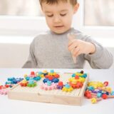 It is a 4-in-1 toy designed to develop fine motor skills, hand-eye coordination, and problem-solving abilities.