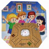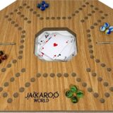 The image shows a box cover for a board game called “JAC-KAROO WORLD”. This is a strategic, team-based game popular in the Middle East that combines elements of marble chase games and card games, similar to the games Ludo, Pachisi, Wahoo, or Tock.