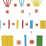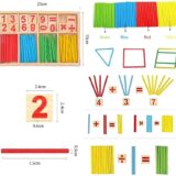 The image displays a “Counting Sticks” or “Mathematical Intelligence Stick” educational toy set, which is a popular Montessori learning tool for children. Purpose: The toy is designed to help children learn basic arithmetic operations (addition, subtraction, multiplication, and division) and number recognition in a hands-on, visual way. Components:  Benefits: It makes abstract math concepts more tangible and engaging for preschoolers and early learners, helping to improve their logical thinking, hand-eye coordination, and overall cognitive ability. Usage: Children can use the sticks to count and form equations with the number and symbol blocks, making learning fun and interactive.