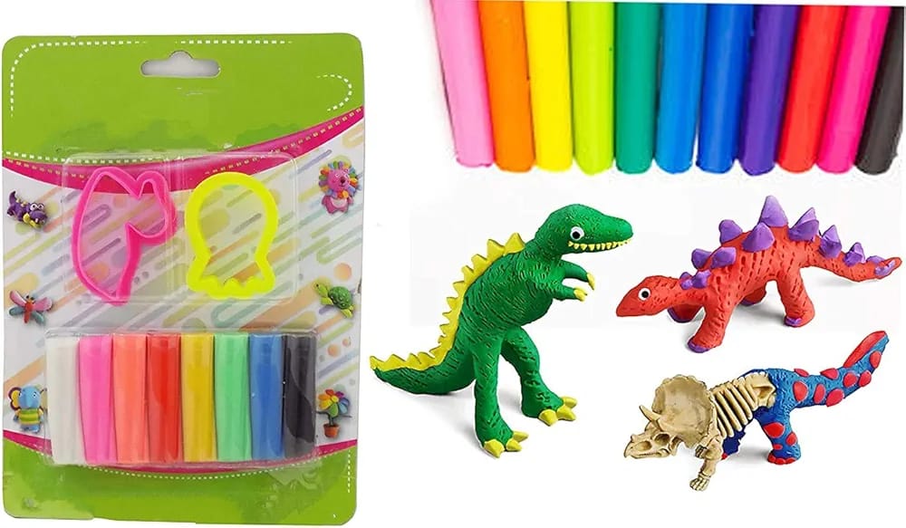Non-toxic and safe: The modelling dough is non-toxic and completely safe for children aged 3+ years. Soft and easily kneadable: The dough is soft and easy for young hands to knead, aiding in motor skill and sensory development. Mess-free use: It is a non-stain and non-sticky dough, ensuring a mess-free experience. Reusable: This type of modelling clay never dries out, allowing for endless creativity. Included accessories: The set comes with complimentary toy moulds inside the pack, such as the person and flower shapes visible in the image. Educational benefits: Play-based learning with modelling dough assists in developing social interaction and problem-solving skills, and helps children express their creativity.
