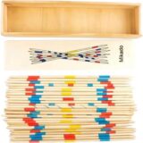 The game is played with a set of wooden or plastic sticks, typically 31, with different colored bands indicating varying point values.