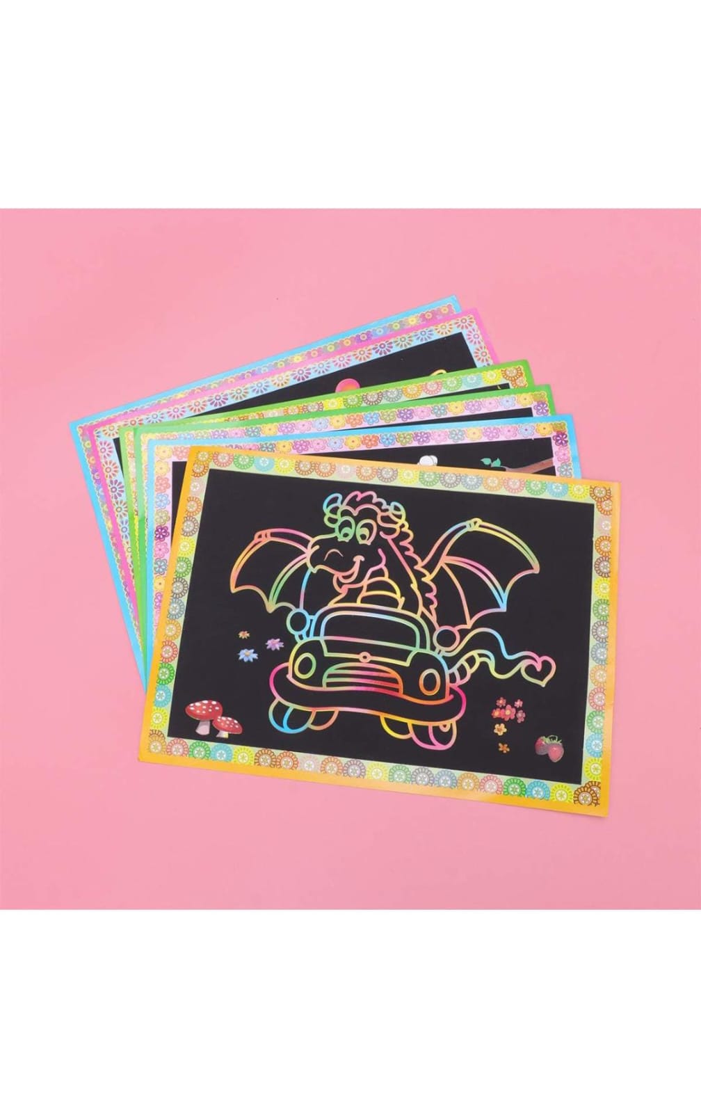 The set includes pre-printed scratch paper with various designs.