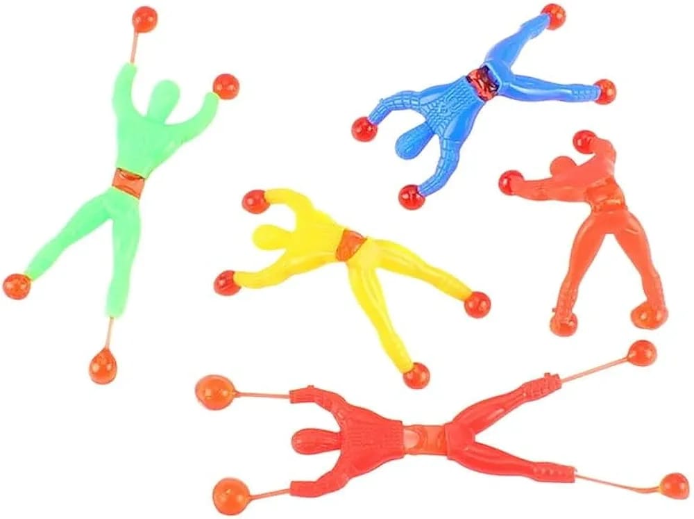 Material: The figures are made from non-toxic, high-quality, special rubber material that feels sticky. They are durable and safe for children. Functionality: When thrown onto a smooth surface like a wall, window, or tile, the figures stick and slowly climb down on their own, which is described as a very funny and interactive process. Play Value: They encourage physical activity, coordination, and imagination as children create their own climbing adventures. Packaging: They typically come in a set of multiple figures in vibrant, assorted colors.