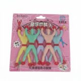 The image displays a package of “Sticky Spider-Man” or “Wall Climbing Sticky Man” action figures, which are popular children’s toys. These figures, shown in various colors like yellow, blue-green, pink, and blue within the package, are made from non-toxic and durable safe rubber materials. They feature adhesive limbs that allow them to cling to and crawl down walls, windows, and other smooth surfaces. The toys offer hours of entertainment and active, imaginative play for children, as they require no batteries and can be used repeatedly by simply washing them if they get dirty.