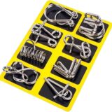 Set Composition: The set includes eight unique designs, such as a spring ring and horseshoe puzzle, each offering a diverse and engaging experience.