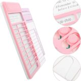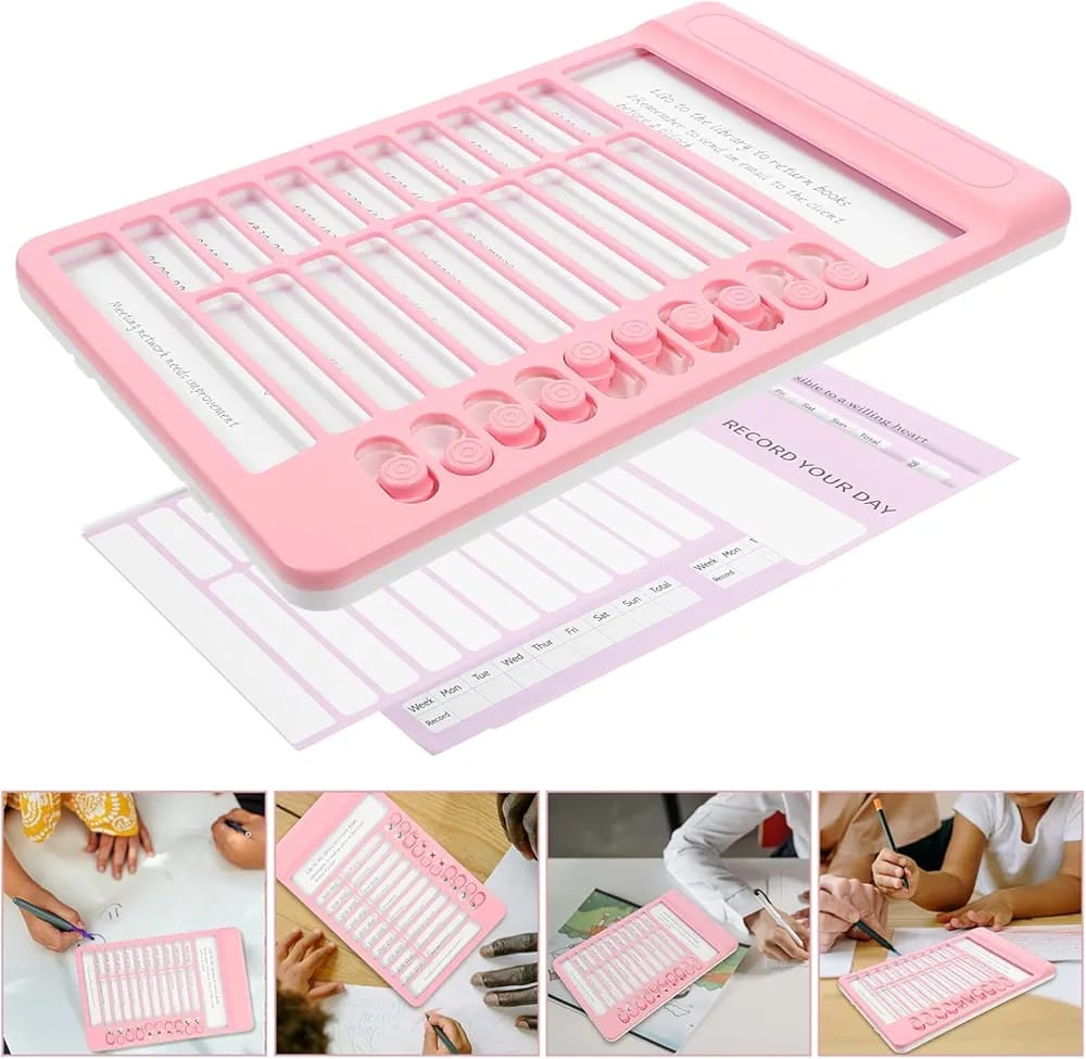 This is a portable habit tracker or chore chart used for task planning and developing routines. It is designed to help track daily tasks and habits for both kids and adults. It comes with detachable blank cards for customizable task lists. The product is made from durable, reusable plastic material.