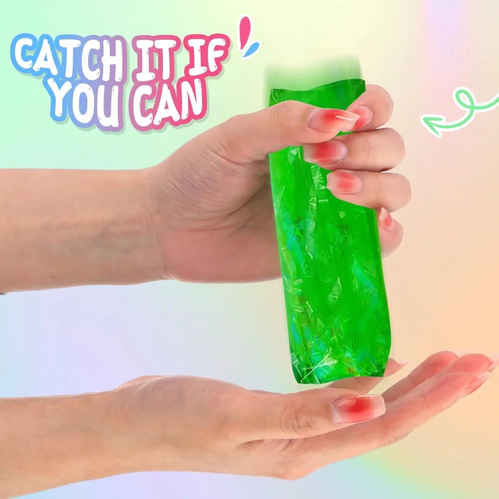 Texture: It has a squishy, slippery texture that feels like holding water in your hands. It is tricky and challenging to hold onto.