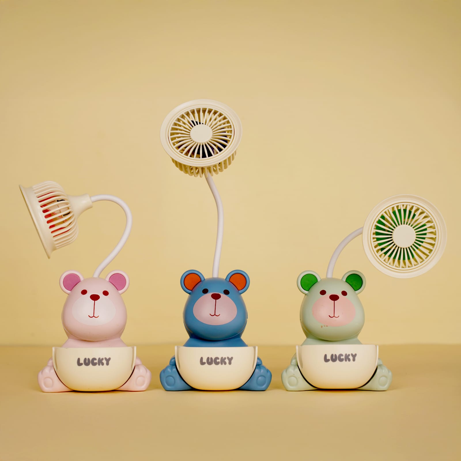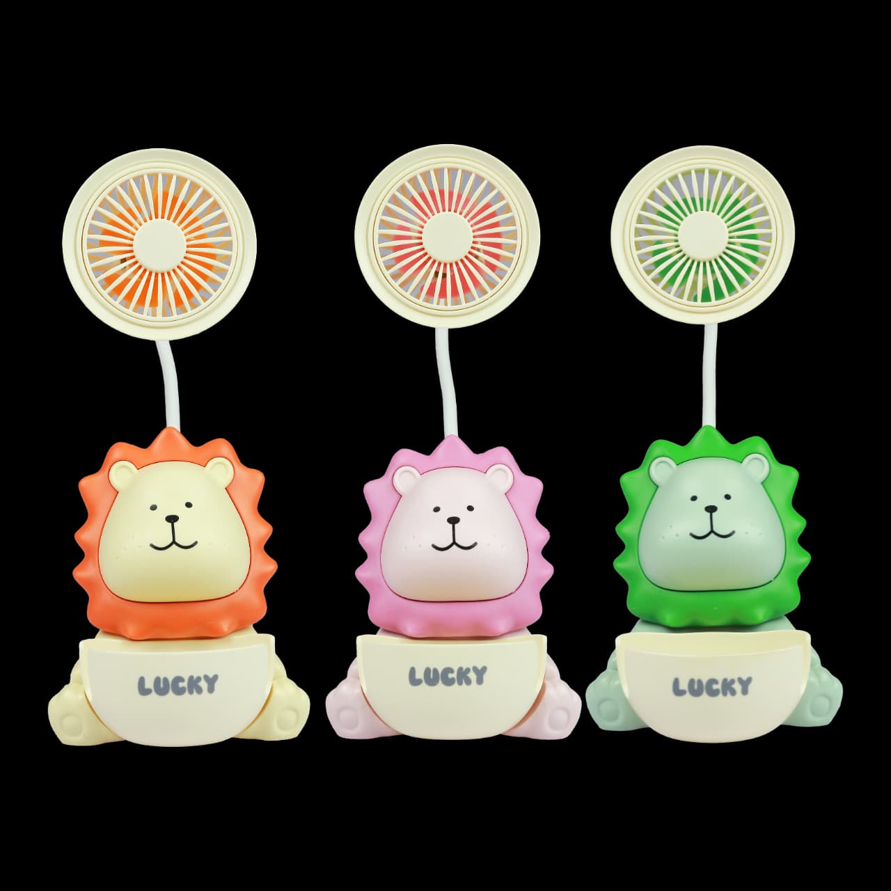 The device combines a personal fan for cooling, an integrated manual pencil sharpener, and a small LED desk light. Some models are also described as having a pen stand or phone holder functionality.
