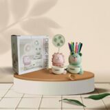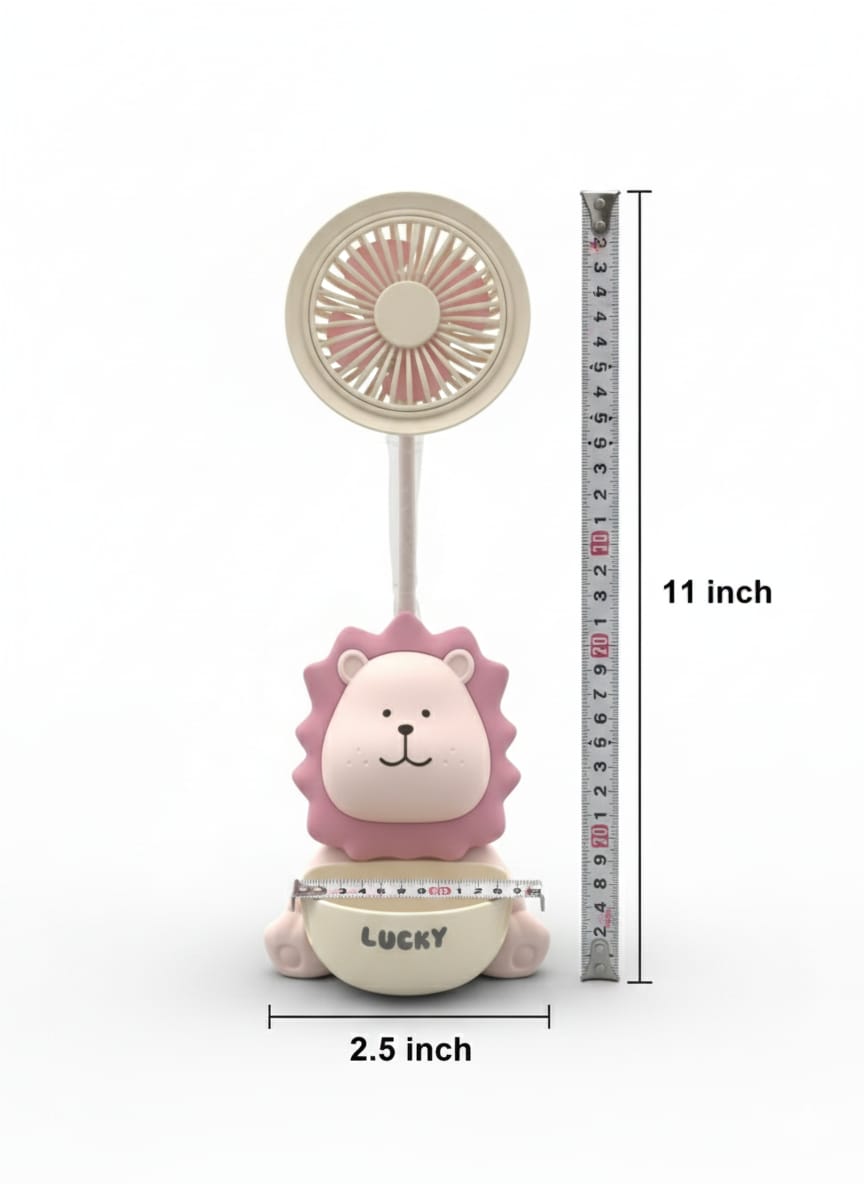 This is a multi-function mini fan that includes a built-in pencil sharpener and pen stand.