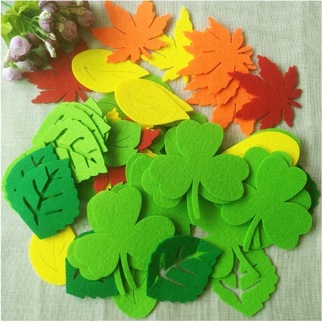 The products displayed appear to be various craft cutouts made from materials such as foam, paper, or felt. These versatile die-cuts come in assorted colors, including different shades of green, yellow, orange, and red, and feature shapes like general leaves, flowers, and shamrocks. The shamrock shapes are often associated with St. Patrick’s Day celebrations. These items are suitable for a variety of craft projects, such as scrapbooking, card making, bulletin board decorations, or general party decor.