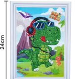 The image displays a packaged “Diamond Painting for Kids” craft kit featuring a space theme. The design on the canvas shows a cartoon astronaut riding a rocket ship, surrounded by planets and flying saucers. The product packaging highlights features such as “Cartoon pattern”, “Multiple themes”, and “Happy growth”. These kits typically come as a complete set that includes a pre-printed board, a tool pen, a drill tray, wax (drill mud), and all the necessary special-shaped diamonds to complete the mosaic design. This specific design is intended as a fun and easy DIY activity for children to improve hand-eye coordination and fine motor skills.