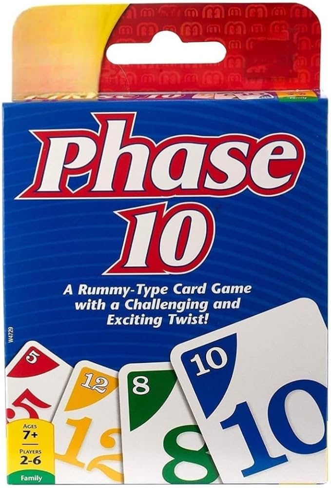 Phase 10 is a popular, engaging card game that combines elements of Rummy with unique twists and challenges. The objective of the game is to be the first player to complete all ten specific phases. Players who successfully complete a phase advance to the next one, while those who do not must try again in the next round. This rummy-type game is designed for ages 7 and up, making it suitable for family gatherings and game nights.