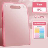 This expanding file folder, also known as an accordion folder, is designed to efficiently organize and store various documents such as A4 papers, certificates, receipts, and bills. It typically features multiple expandable pockets, often 13, for systematic categorization of paperwork. Made from durable, high-quality polypropylene (PP) material, the folder is waterproof and tear-resistant, ensuring documents stay safe from damage. The design allows for easy indexing and identification of contents, making it suitable for use at school, home, or office.