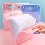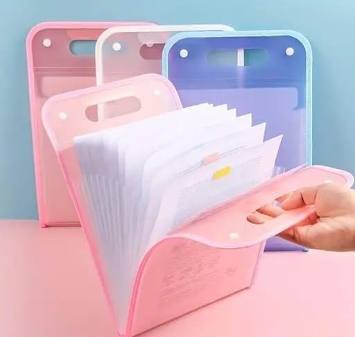Expanding Design: Features a multi-layer design, often with 13 individual pockets or layers, allowing for significant expansion and organization of numerous documents. Secure Closure: Equipped with a button or snap closure mechanism to ensure that the documents remain securely stored and protected inside the folder. Capacity: Designed to hold a large volume of paperwork, with some models capable of holding up to 500 pages of A4 size documents. Material: Typically made from durable, tear-resistant plastic material, which helps protect the contents from damage. Size Compatibility: Primarily designed to accommodate A4 and letter-size documents. Portability and Versatility: Often includes a handle cutout for easy carrying, making it suitable for use at home, office, school, or travel.