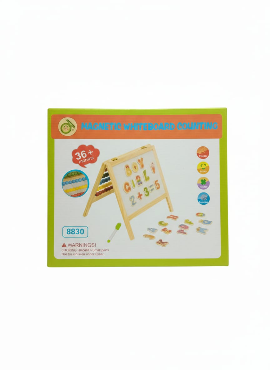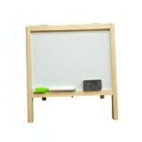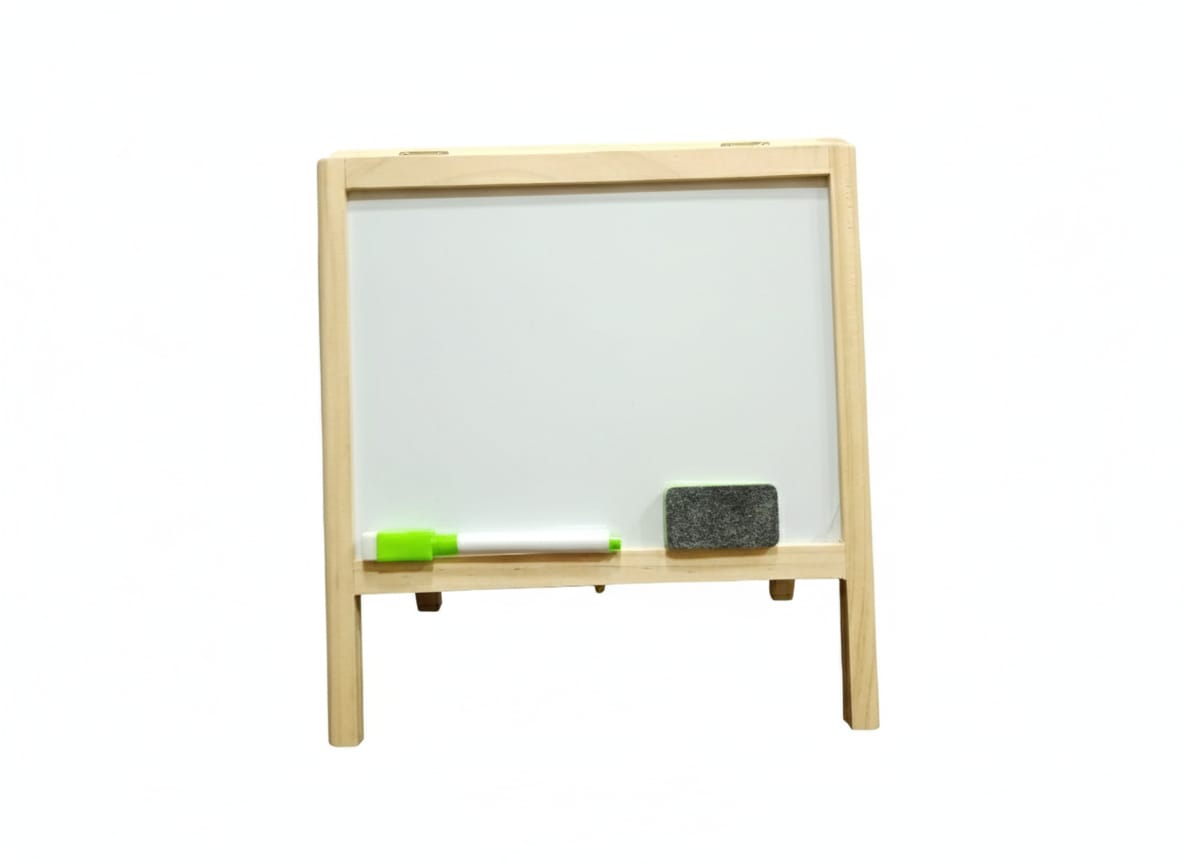 Writing Surface: It provides a clean, smooth surface for writing with dry-erase markers. Magnetic: The surface is generally magnetic, allowing for notes or reminders to be held in place with magnets. Accessories Included: The specific item in the image comes with a green dry-erase marker and a black eraser, which are often included for immediate use. Frame and Structure: The board is held within a light-colored frame (likely wood or plastic) and is designed to stand on a flat surface, making it portable and easy to position. Durability: Similar boards are often designed to be scratch-resistant and easy to clean, ensuring longevity and minimal ghosting (leftover ink marks). Versatility: This type of board is suitable for a variety of uses, including crafting, presentations, or as a simple doodle board for children.