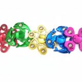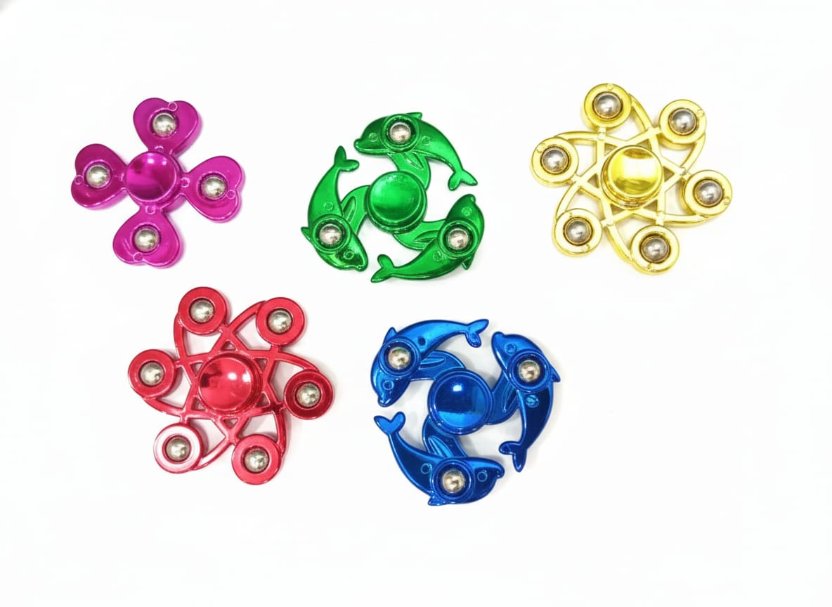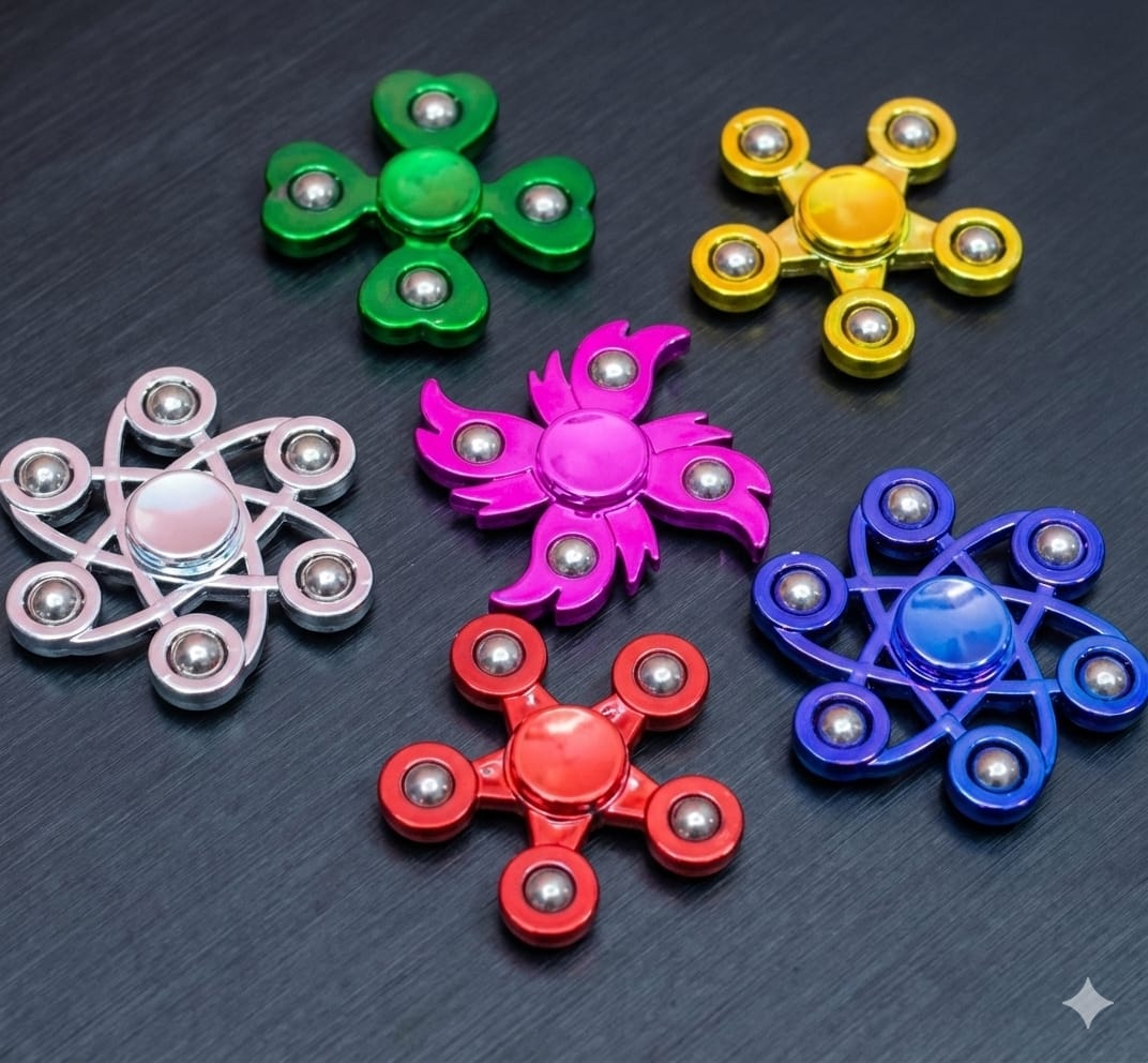 These are metal fidget spinners, a type of toy designed to provide a satisfying sensory experience for stress relief and focus.