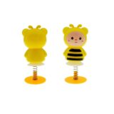 The product in the image is a spring head doll or head shaking toy, designed as a small, playful gadget with a wobbling motion. The specific toy is pink, shaped like a character resembling a bee or bear with brown stripes on its body