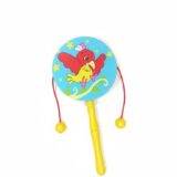 This is a traditional wooden damru rattle toy, also known as a pellet drum.